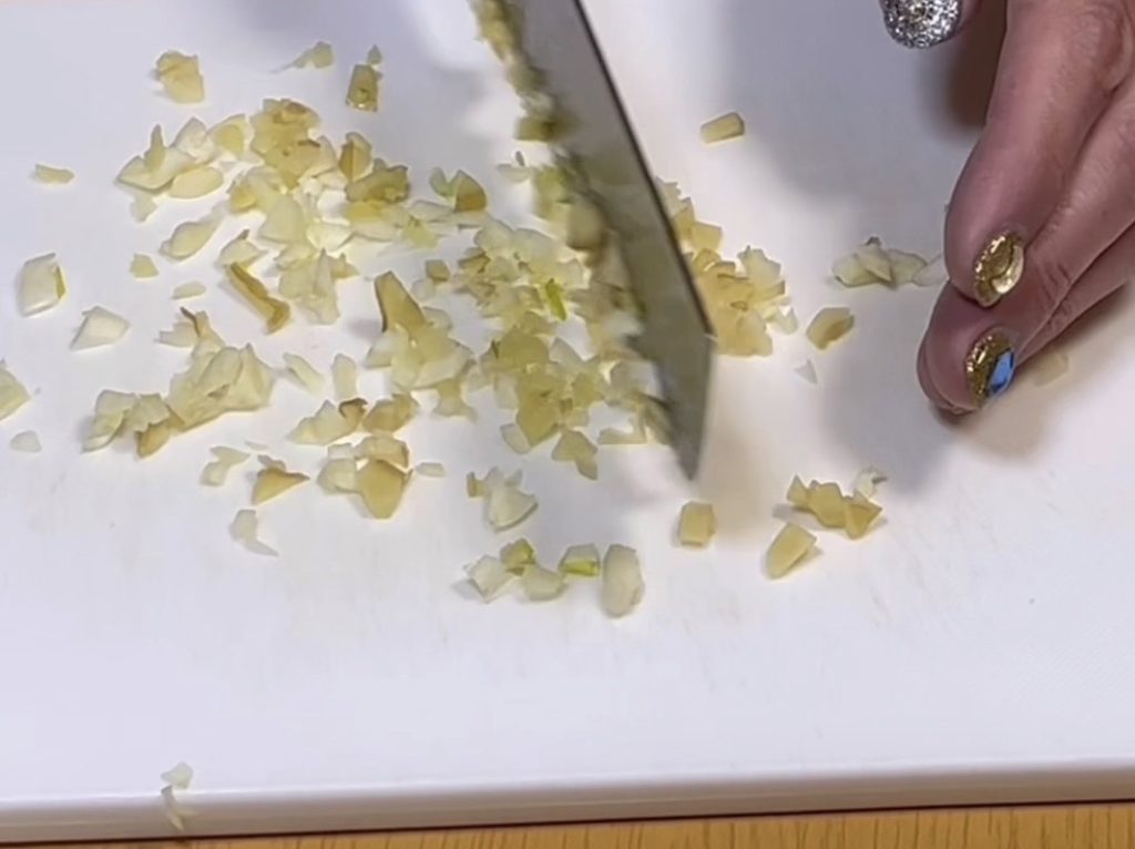 ニンニクと生姜をみじん切りにします。(無かったらなくても大丈夫)