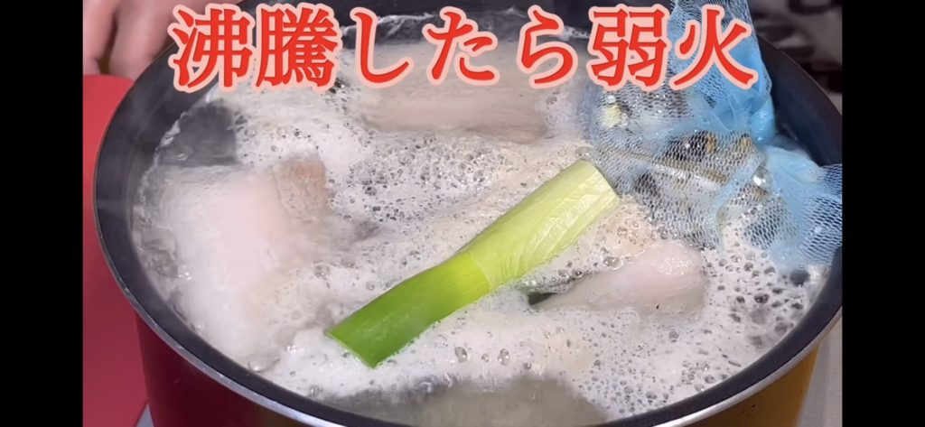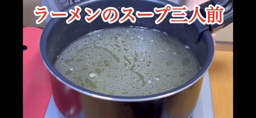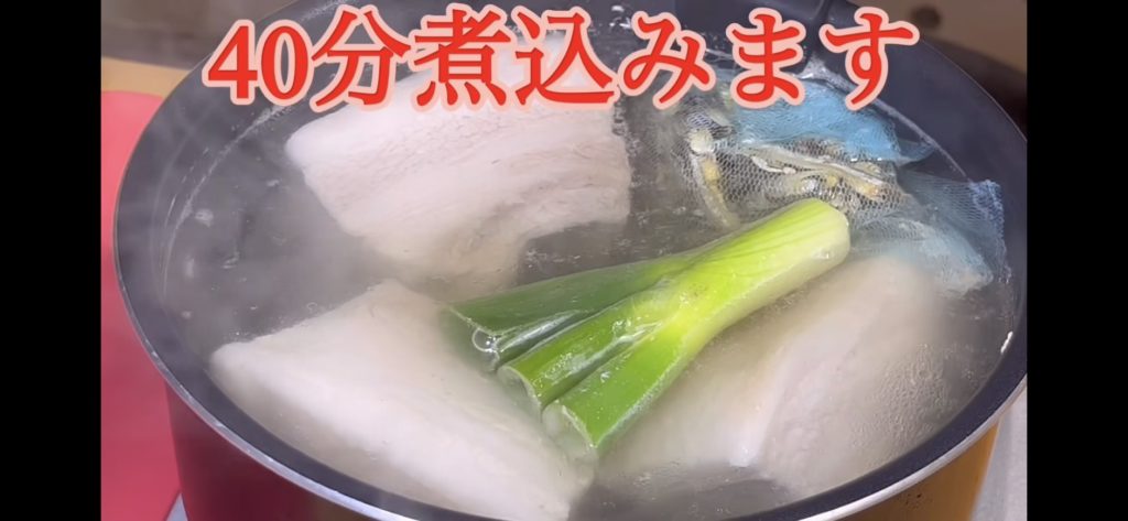 チャーシューを煮込んでいる間に、次の工程に移行します。