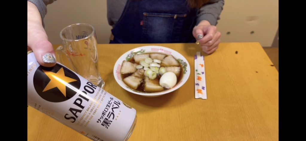 早速、ビールを持ってきました。やっぱりラーメンと言えばビールですよね。